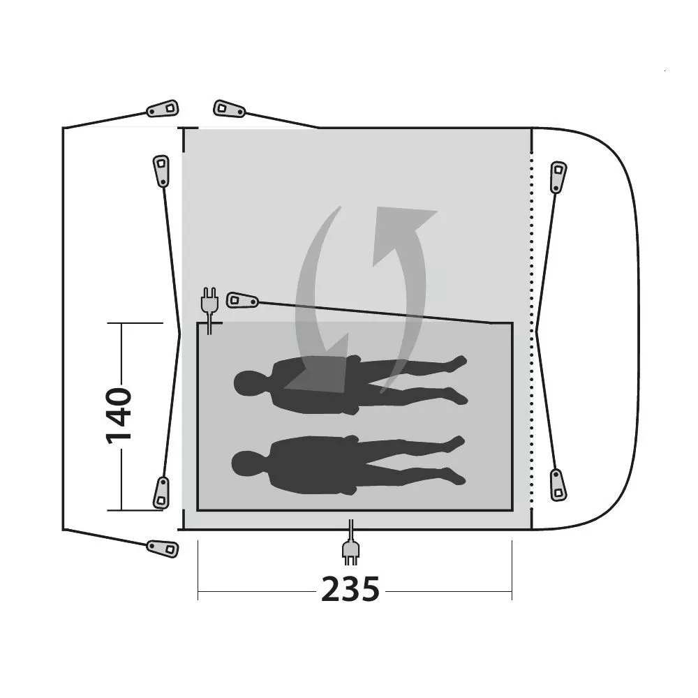 Das Innenzelt für die Buszelt- und Wohnmobilvorzelte aus der Serie Outwell Newburg 260 und Parkville 260 bietet einen Schlafbereich für 2 Personen. Die Schlafkabine kann an zwei Positionen innerhalb des Zeltes angebracht werden – links oder rechts. Die Befestigung erfolgt schnell und einfach über Knebel im Vorzelt. Die senkrechten Wände sorgen für ein besonders geräumiges Gefühl und Türen an beiden Seiten ermöglichen einen flexiblen Zugang. Dieser zusätzliche Schlafbereich bietet Privatsphäre und ist ideal für Gäste, heranwachsende Kinder oder für sich selbst.
